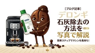 デロンギ マグニフィカの石灰除去(除石灰)のやり方を写真で解説。ランプが点滅したらすぐ対応!頻度・必要な除石灰剤の選び方・クエン酸代用の可否まで全部まとめました。