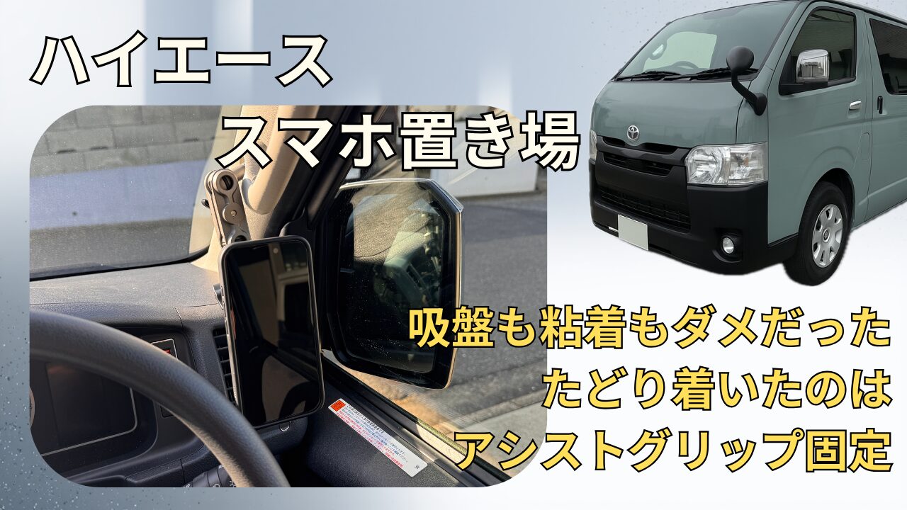 ハイエースでスマホをナビ代わりに使うとき、どこに置くか問題に悩んでいました。