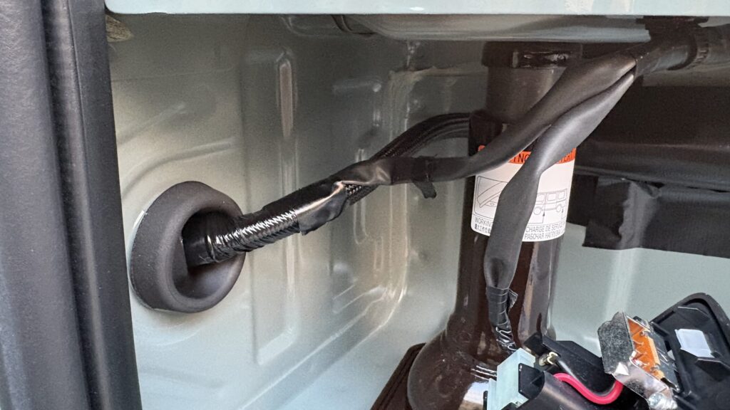 まず、グロメット部分にシリコンスプレーを軽く吹いておくと、配線が通りやすくなります。