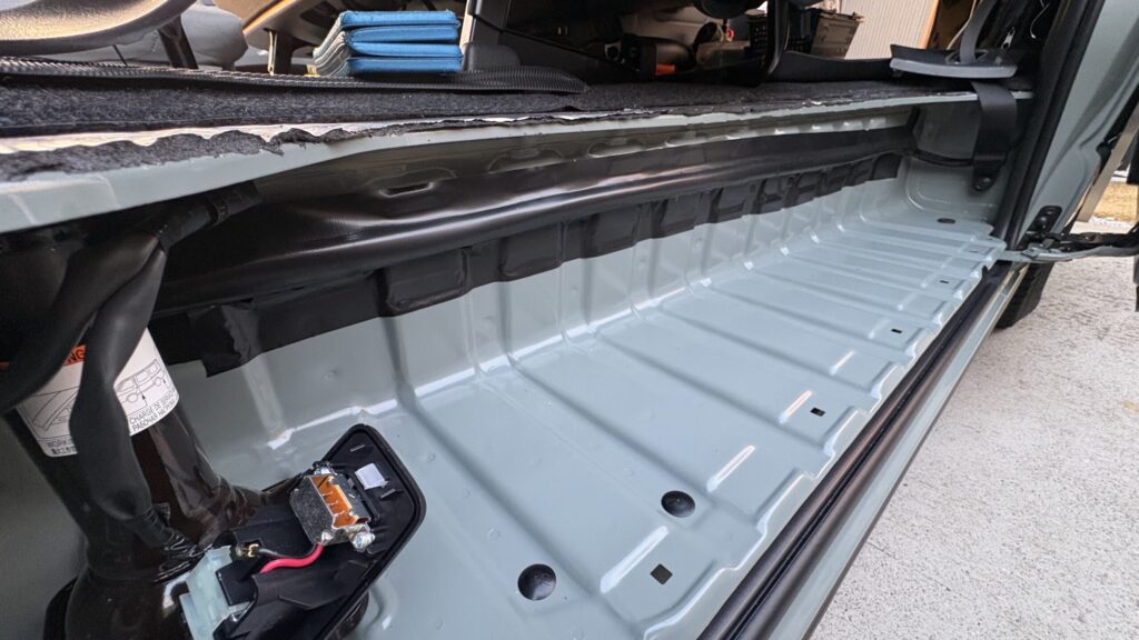 次に、ステップ下の配線は防水テープを使って固定。