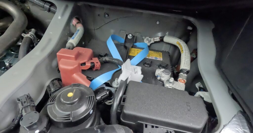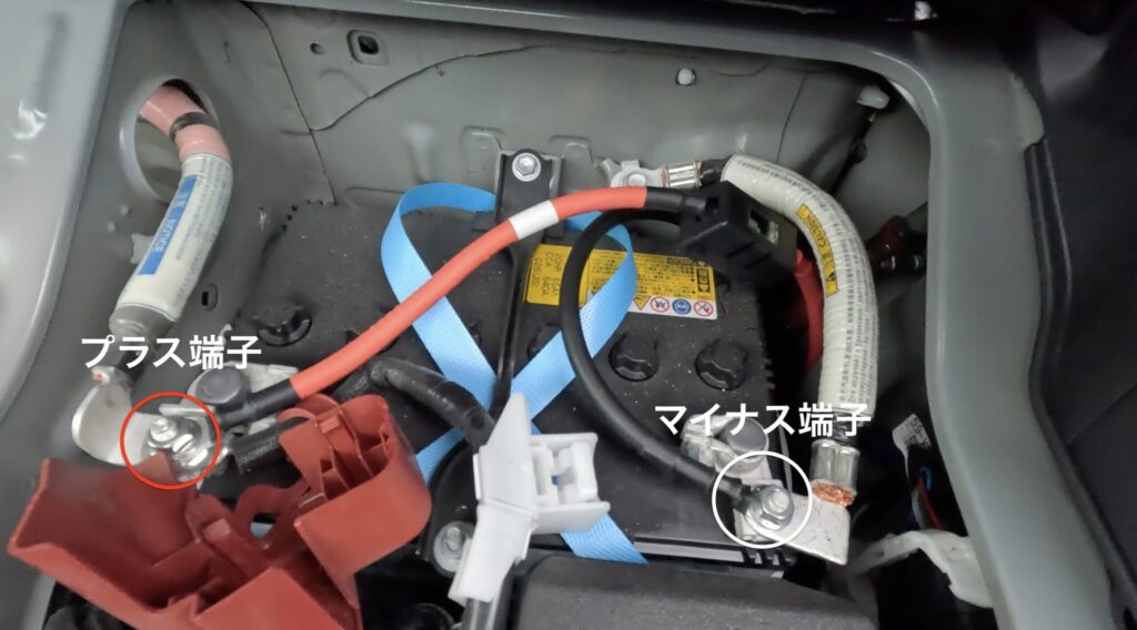 ⚠️ 必ずマイナス(−)側から取り付けます。