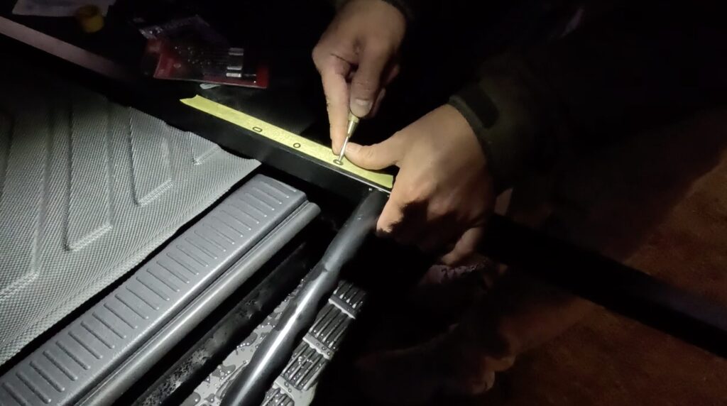 - マジックでネジ位置をマーキング