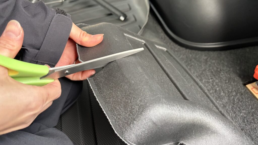 フレームの足に合わせてハサミでマットをカットしました。
