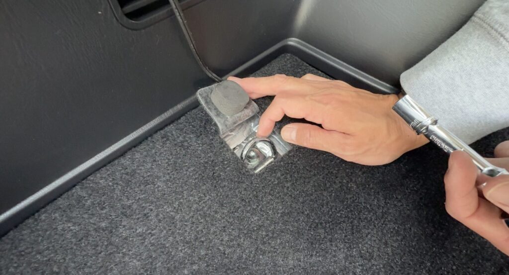 まずは、荷室にある**純正タイダウンフック(4ヶ所)**を外します。