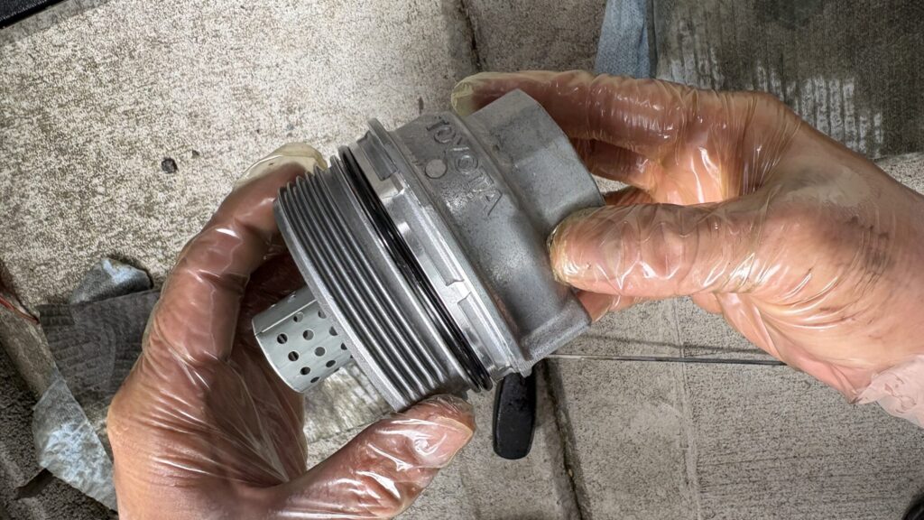 フィルター本体側のOリングを新品に交換する(新しいオイルを薄く塗ってから取り付ける)