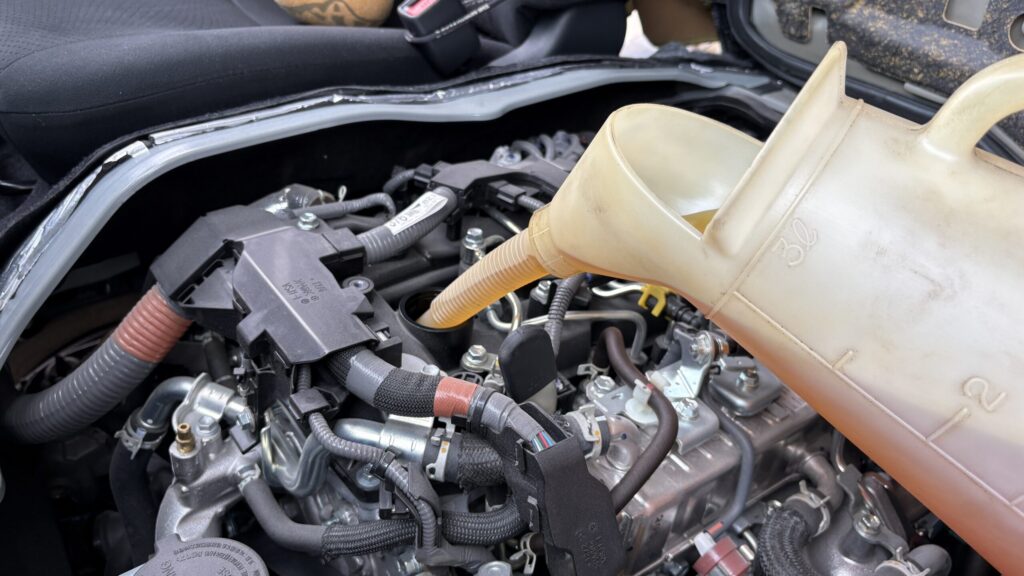 ぼくが使ったのはトヨタ純正のDL-1 0W-30(20Lペール缶)。ペール缶なら3回以上分あるのでコスパが良いです。なおエンジンオイルは値上がり傾向にあるので、購入前に必ず価格を確認してみてください。