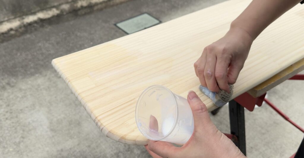 水性ニス|天板の仕上げ・保護に使用。速乾で扱いやすい水性がおすすめです。