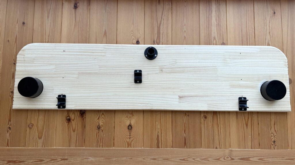 天板はホームセンターまたはネットで揃えられる集成材の規格品をそのまま使っています。カット不要なサイズを選ぶと作業がグッと楽になります。上のリンクからネットでまとめて注文することも可能です。
