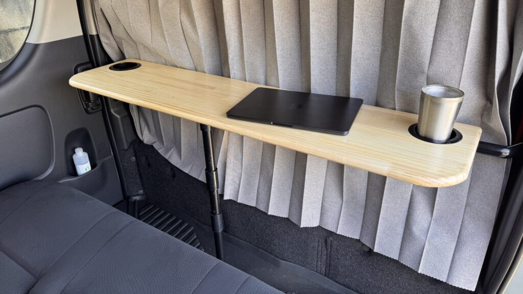 ご飯・ノートPC作業・ドリンクホルダーまで付けたので、移動中の快適さが一段上がりました。