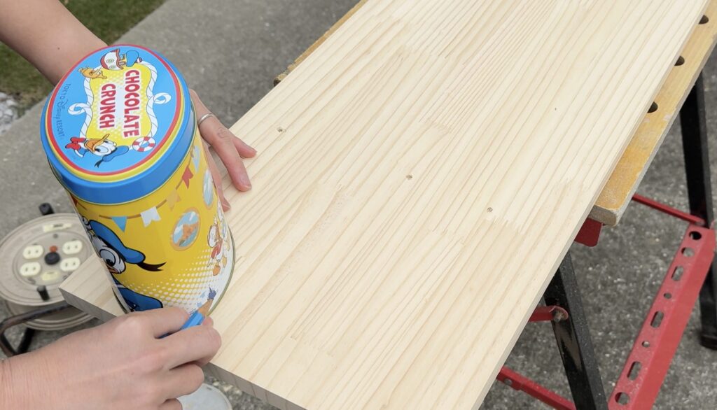 まず、コンパスや缶のフタなどを使って墨付けすると綺麗な円が描けます。