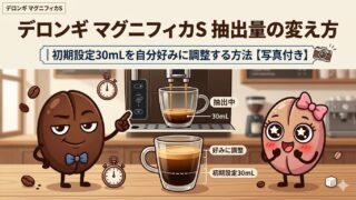 デロンギマグニフィカS デロンギ マグニフィカS 抽出量の変え方|初期設定30mLを自分好みに調整する方法【写真付き】 デロンギ・マグニフィカSの抽出量調整方法を写真付きで完全解説!コーヒーの濃さや量を好みに合わせて簡単に変更できます。 2025.02.24 デロンギマグニフィカS設定方法