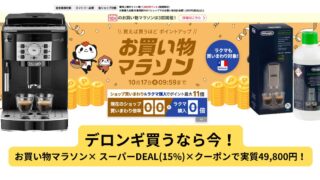 デロンギマグニフィカS 【10月お買い物マラソン攻略】デロンギ・マグニフィカSをお得に買うコツ【約20,000円OFF】 楽天お買い物マラソン(10/14〜10/17)でデロンギ「マグニフィカS」を最もお得に買う方法を解説。クーポン・ポイント還元・キャッシュバックを活用すれば、実質20,000円以上安くなるチャンス!買い方のコツ・注意点・おすすめ商品も紹介。 2025.08.04 デロンギマグニフィカSレビュー